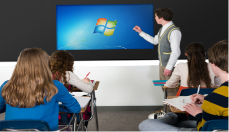 教室的一端悬挂着的是与传统黑板外形完全一致的智能黑板,没有冗余的电线、投影仪、推拉黑板,教室干净清爽,带给师生一天好心情;