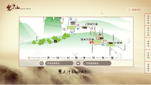 在景区的特定导航区域(如景区服务处、收费处等)设置触控一体机,为游客提供各类旅游导航,景区介绍(文字,视频),景区气象播报,紧急通知,景点分布图,游览线路等。